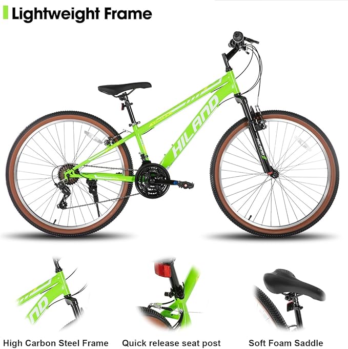 HILAND 26 Inch Mountain Bike for Mens and Womens, 21 Speeds Mountain Bicycle, High-Tensile Steel Frame, V Brake, Hardtail MTB for Adults