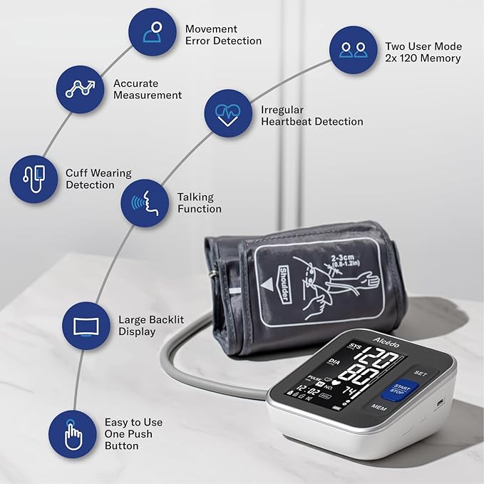 Alcedo Blood Pressure Monitor for Home Use, Automatic Digital BP Machine with Large Cuff for Upper Arm (Black Backlit Screen)
