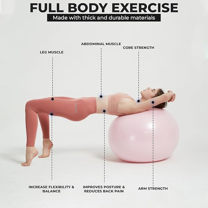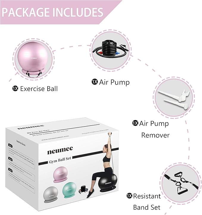 - Stable Non-Slip Base for Safety & Balance: Features a sturdy and durable base designed to keep the exercise ball stable during workouts, ensuring safety, comfort, and reliable use at home, gym, or office