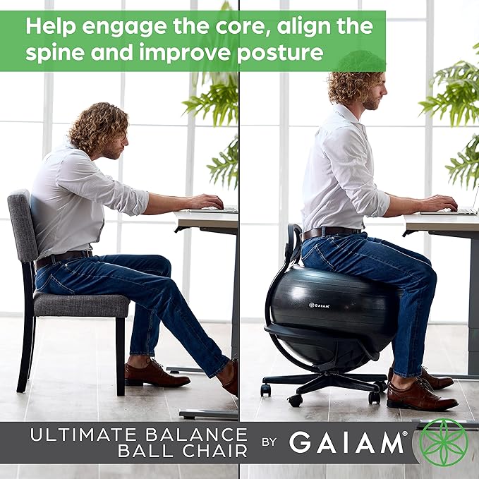 - SWIVEL BASE: Gaiam Ultimate Balance Ball Chair is now available with a swivel base, so you can make the most out of your workspace by moving around your desk and office with ease