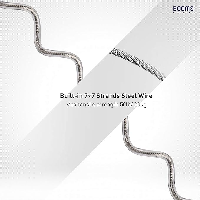 - [ HEAVY DUTY AND GREAT LENGTH ] The fishing lanyard is built-in 7*7 strands steel wire, the tensile strength is 50lb. Good spring tension, but not excessive, stretches from 20” to 79”, flexible and no interference