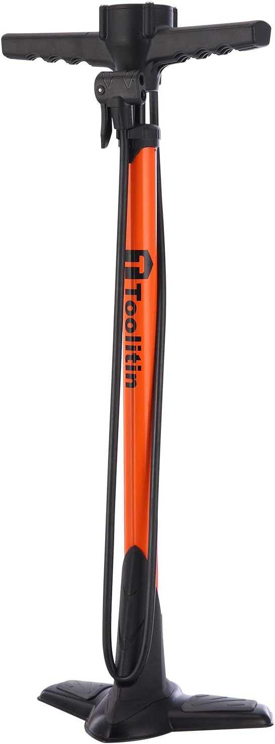 - Muti-Function Use: Save time and effort,Toolitin bike tire pump can inflate for bicycles,automobile,electric vehicles, motorcycles, air cushion, swimming ring, basketball, football, life buoy, air bed, and any inflatable balls toys;suitable for indoor and outdoor use