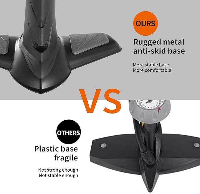- Stable and Durable Anti-Slip Base:The widened hard plastic base of the bicycle pump has Anti-slip silicone, light weight, easy to use, labor saving, bottom groove design, wear-resistant and Anti-slip