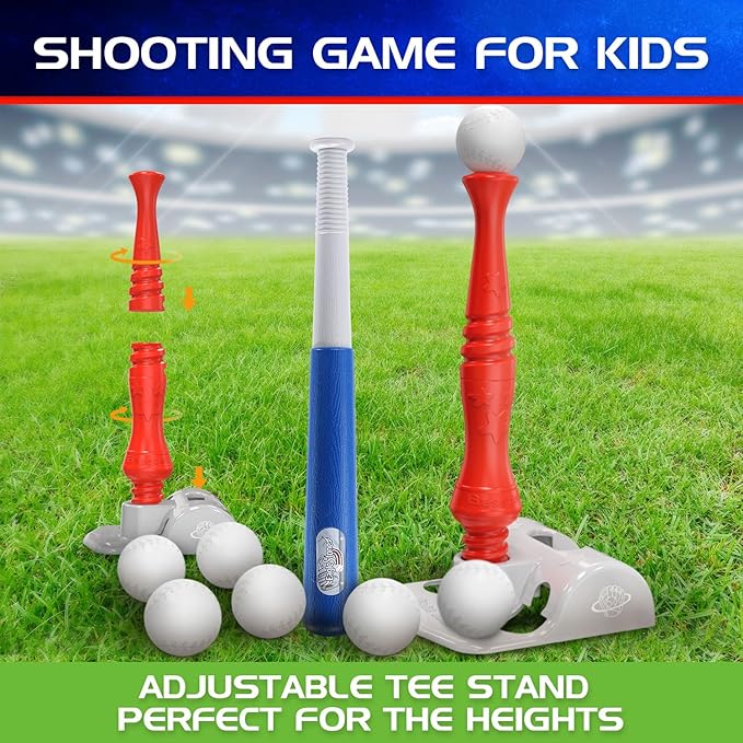 - Sturdy & Safe Design for Confident Play: Say goodbye to tipping tees! Our t ball sets for kids 3-5 features an oversized, wide-weighted base that stays firmly in place, even during the most energetic swings. Perfect for young players, it ensures a safe and frustration-free experience every time they step up to bat