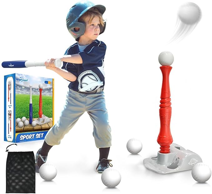 - Complete All-in-One T-Ball Set: Everything your little slugger needs to get started! This set includes: 6 soft 2.2-inch baseballs (safe for beginners),1 lightweight, rotating t ball bat (perfect for small hands),1 adjustable-height tee (grows with your child). Ideal for kids aged 3-5, 5-8. This set is perfect for backyard fun, team practice, or family playtime