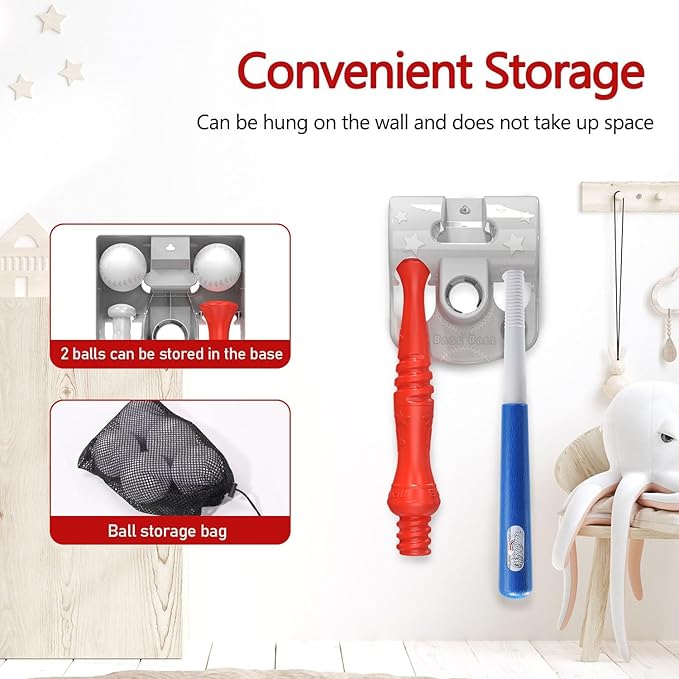 - Space-Saving & Portable Design: No more clutter! Our Tee Ball set features a quick “take-apart” design and comes with a convenient storage bag. The “hang-on-the-wall” feature makes it easy to store, saving space while keeping everything organized and ready for the next game