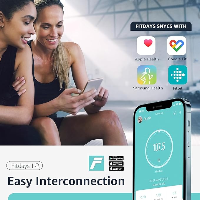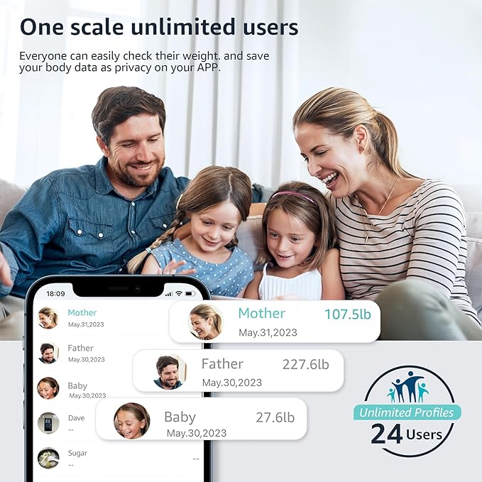- Sync with Health Apps - FITDAYS app on IOS and Android, and FITDAYS app can easily sync with other fitness Apps like Apple Health, Google Fit, Samsung Health, Fitbit and so on, which let you store and share your data more conveniently. Fitdays App allows you to create unlimited profiles 24 Users for your family and friends with only one smart scale. It is very helpful and convenient for those who keep fit and do health sports for improvement goal.