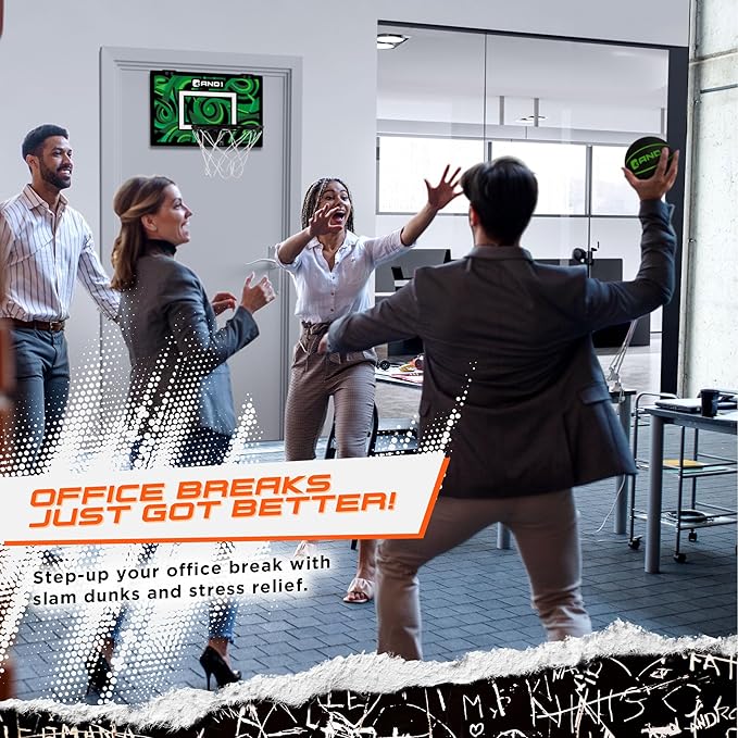 - MAXIMUM DURABILITY AND DOOR PROTECTION: Safeguard your door while indulging in mini basketball games with the AND1 Mini Hoop. The professional-grade shatterproof backboard ensures durability, and the foam-padded backing protects your door, making it a top choice for an indoor basketball hoop.