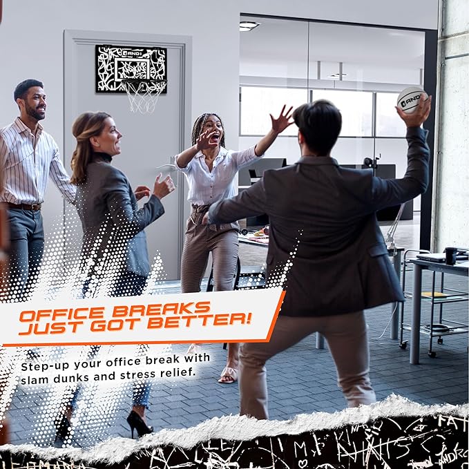 AND1 Over the Door Mini Basketball Hoop: 18x12 Shatterproof Backboard, 2 Mini Basketballs, and Hand Pump Included- Ultimate Indoor Basketball Accessory for Kids and Adults, No Tools Required