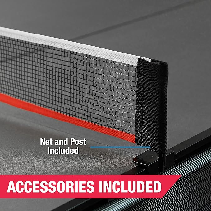 - HIGH-SPEED RALLIES: Experience lightning-fast rallies! This tabletop tennis game features a 9mm gray laminated engineered wood playfield. Feel the power as you unleash dynamic strokes and precisely nail those intricate spins on the responsive surface.
