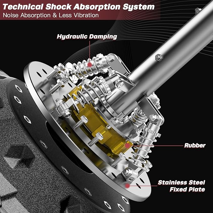 - Better Technical Shock Absorption System: 4 sets of hydraulic damping, rubber and stainless steel fixed plate work together to improve the shock relief effect again. This combination can fully break down the bounce-back force to make stress distribution very evenly, minimizing the damage to the human body to the maximum extent