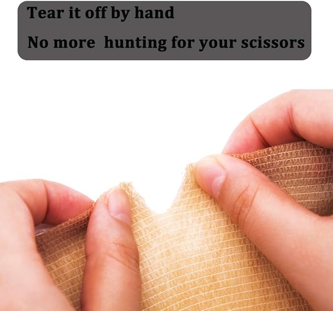 - Lightweight Breathable- Stretchy fabric is very soft, easy to wrap, water resistant, breathable and safe, good for the skin and better for healing. Can be torn with hand, no need to use scissors. Take with you anywhere Use for sprains, swelling and soreness.
