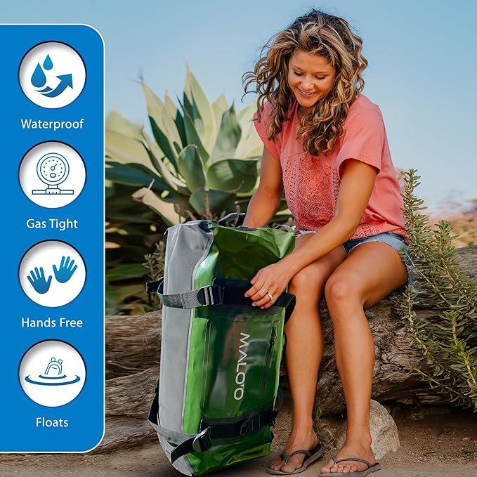 Malo'o Airtight Waterproof Adventure Duffle - Ideal for Kayaking, Camping, Beach, Fishing, Boating, Hiking - Water-Tight Zipper