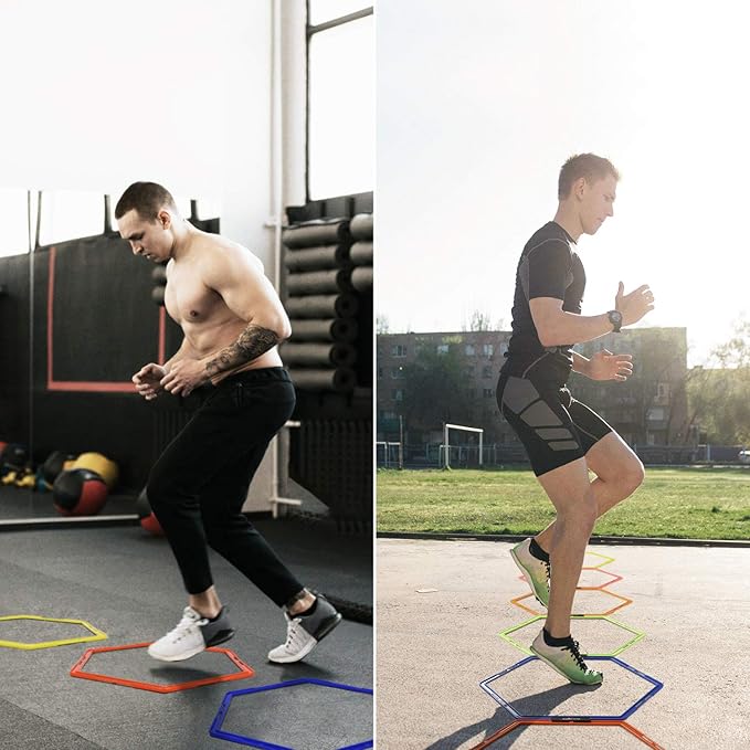 - ULTRA-DURABLE HEXAGONAL SPEED: Heavy-duty plastic agility training equipment is tough enough to handle countless sessions and withstand the inevitable stomps and kicks; Football ladder enhances speed, agility, and footwork.