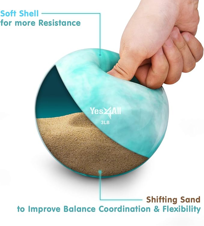 - PVC SHELL – UNSTABLE IRON SAND INSIDE: Weighted balls for exercise are durable to function well long-term, iron sand inside creates instability to activate different muscle groups for a leaner & tighter body; Made with PVC coating, do not place toning balls directly on painted furniture as paint may lift & stick to the ball