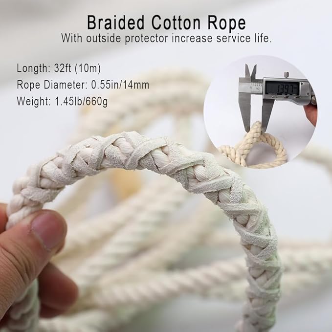 - 【Durable Rope】 This cotton rope is crafted from high strength cotton hemp fabric. The section that frequently touches the ground is reinforced with tough leather straps, which reduced rope wear and increased service life