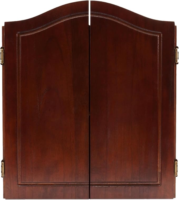 - Size: The dart board cabinet dimensions when opened are 43" W x 25" H, closed dimensions are 25" H x 22" W x 3.5" D; bristle dartboard dimensions are 18" x 1.5"