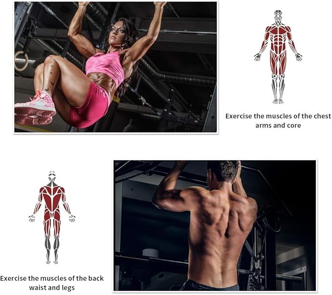 - Multifunctional Fitness Machine:Wall mounted pull up bar can support many kinds of sport exercise like pull ups, chin ups, dip station, leg raises and boxing. Perfect for exercising your backs, shoulder, chest, arms, triceps, biceps, lats, and the front of your abs.