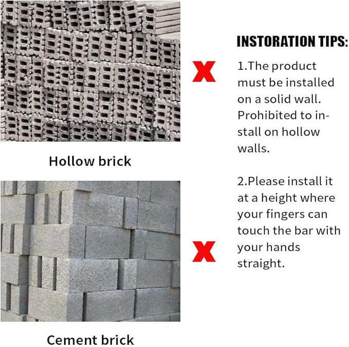 - Wall Mounted Requirements:Easy Assembly - Be it concrete, brick on cinder blocks, you can install the bar on any of them.DON'T install on drywall, plaster walls and cavity. Full instructions & all mounting hardware are included.