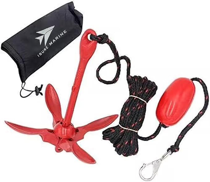 ISURE MARINE Kayak Anchor Kits Portable Folding Grapnel Anchor Buoy Kit Canoe Kayak Raft Boat Sailboat Fishing 3.5 lbs Marine Rope for Small Boats, Kayaks Jet Ski (Red or Green)