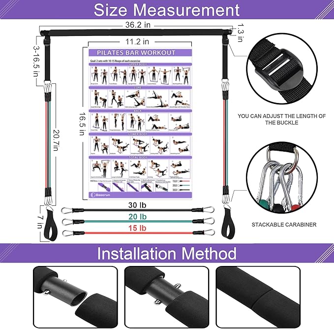 - 🏆 ADVANCED PILATES STICK DESIGN – Crafted with three detachable steel pipes that are perfectly balanced for smooth movements our Pilates stick bar is lightweight, gives you a firm grip, and can be broken down so you can take it with you anywhere. Both ends are equipped with hoisting straps, the length can be adjusted by the buckle, which is simple and fast.