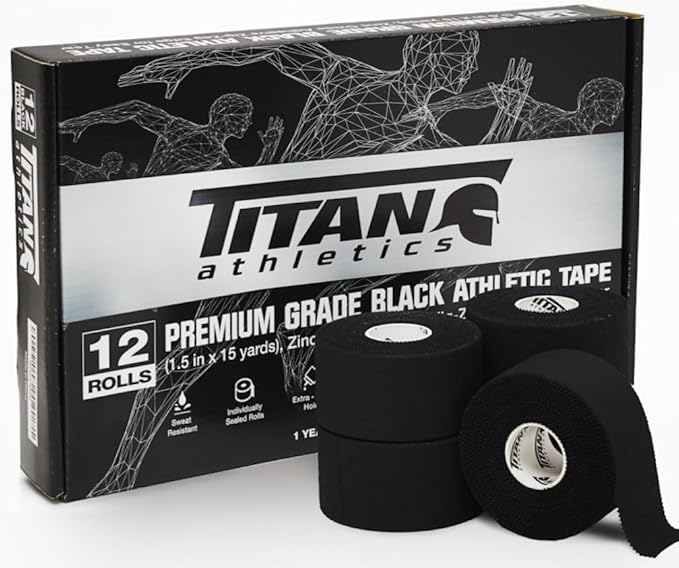 - 12 PACK OF PREMIUM QUALITY BLACK ATHLETIC TAPE (1.5"x45FT PER ROLL): Our Sports Tape is Perfect for Athletes of all Levels; Soccer, Hockey, Gymnastics, Crossfit, Football, Baseball, Martial Arts & More. Whatever Your Sport, We've got you Covered. Wrap & Strap Your Wrists, Ankles, Knees & Fingers.