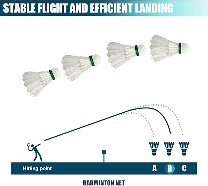 - 【Superior Composite Fiber Head】: The synthetic Fiber head makes the shuttlecocks feel better Provides consistent bounce and stable trajectory, providing stable flight path and consistent performance over time