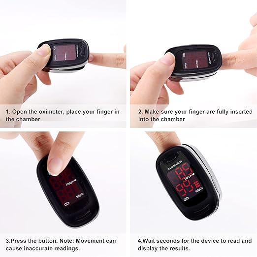 - [Portable & Easy To Use] -The light-weight oxygen monitor is about 50g(with the batteries), you only need to put your finger in the fingertip pulse oximeter testing chamber, the result will be shown.
