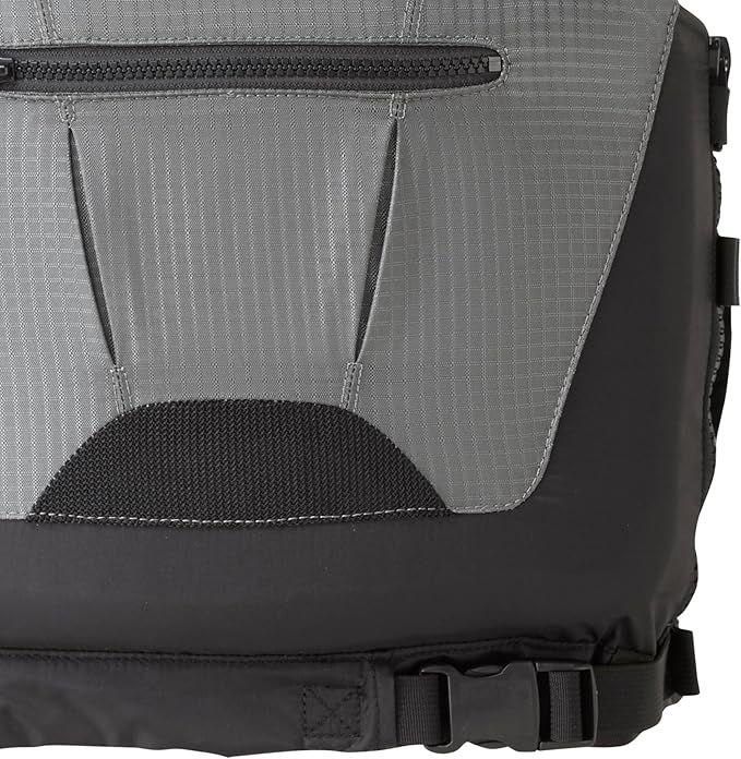 - Features include - Easy side zip access. Ladder lock adjustment for a secure fit. Adjustable shoulder length with neoprene padding. Two front zippered pockets.