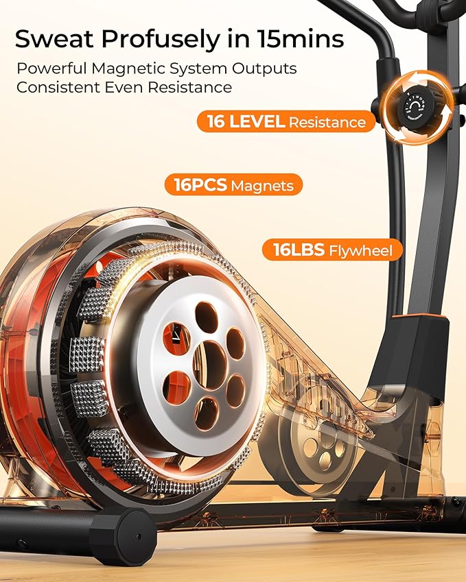 - 16LB Flywheel with 16 Resistance Levels: Provides double resistance levels than the ordinary product, smooth feeling thanks to 16lb flywheel and high gear ratio, no need for any electrical source; All stages exerciser can get efficient exercise with different resistance, no matter you are beginner or fanatic