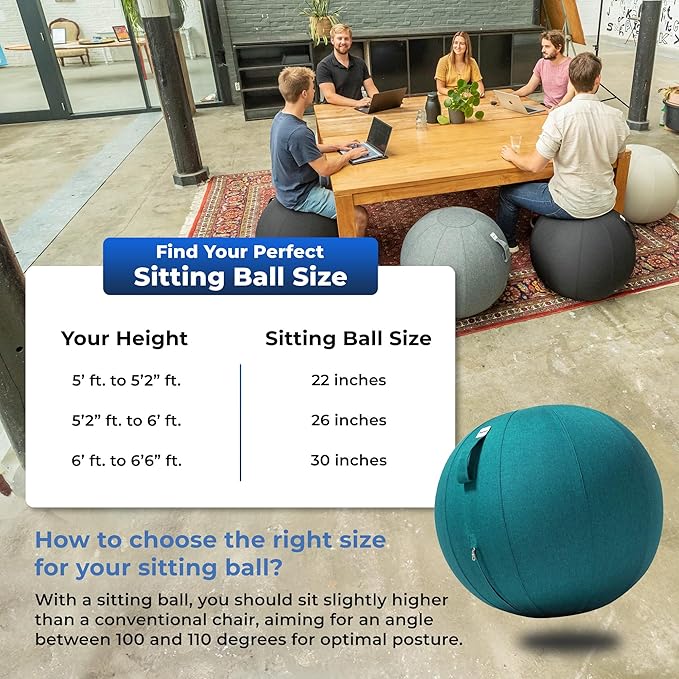 Balance Ball Chair for Office & Home - Ergonomic Exercise Ball for Posture & Back Pain Relief, Yoga Ball Chair - Sitting Ball with Washable Linen Cover