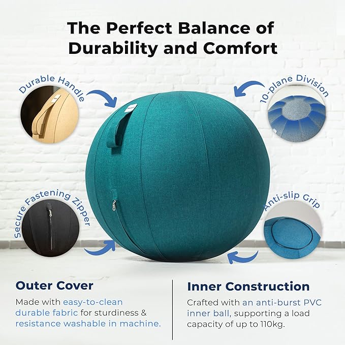 - COMPLETE PACKAGE - Unboxing reveals a beautiful colored fabric cover, inflatable PVC ball, a user-friendly handpump, and comprehensive setup instructions. The Sitting ball offers an uncomplicated, all-in-one solution for those seeking a work and lifestyle upgrade.