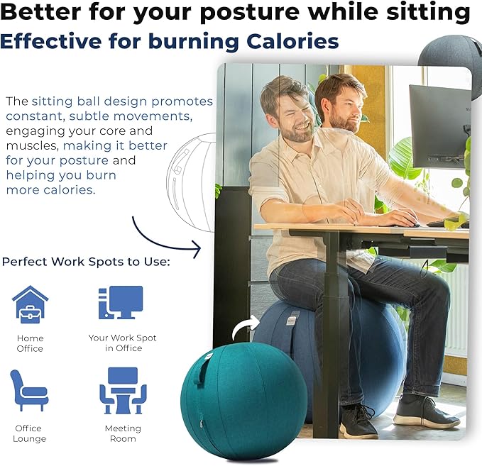 - ACTIVE SITTING, ACTIVE LIFE - The unstable design requires continuous micro-movements, activating muscles and promoting strength. Burn more calories compared to seated chairs, improve daily movement and boost your productivity with our Yoga Ball Chair.