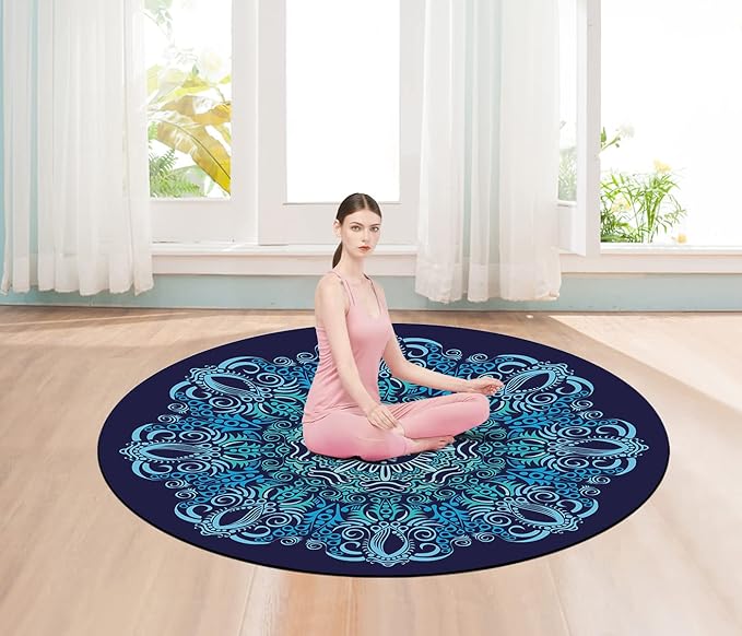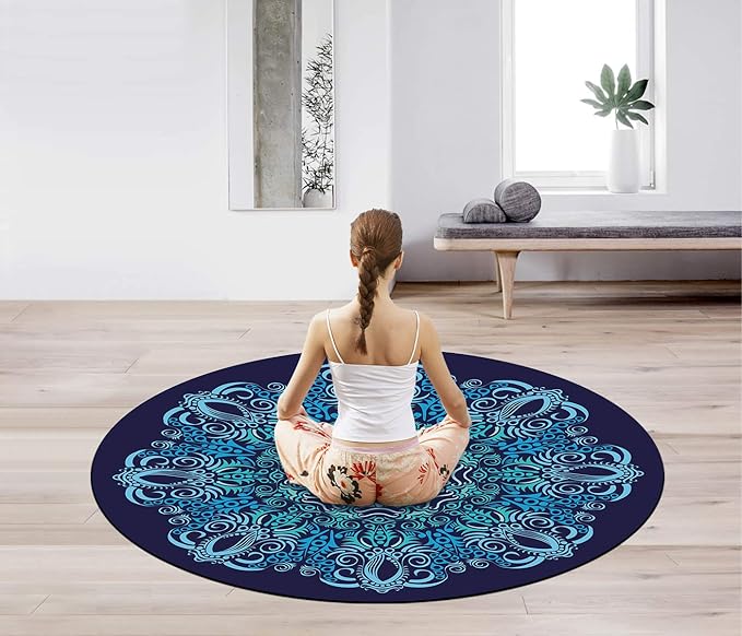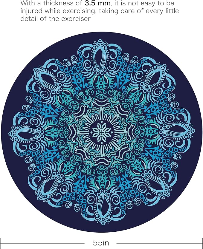 - Extra Size: diameter 55" (140cm), our extra large round mat provide ultra comfort and support, you can enjoy your meditation or yoga freely and no worry about the limited of the traditional mat size. 3.5mm thick, it's perfect support your ankles in the practice, relieves achy joints and sore ligaments during your exercise.