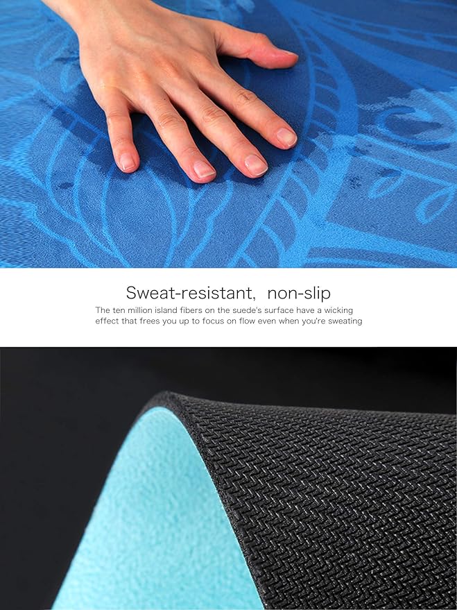 - Double Sides Non-slip: Faux suede surface can absorb sweat or water instantly. And since the bottom of the mat is made of natural rubber, it is slip resistant and easy to carry. Non slip on wood floor, tile floor, cement floor. The double-sided sticky non-slip texture of the mat provides excellent traction and superior grip, best suitable to practice many forms of yoga.