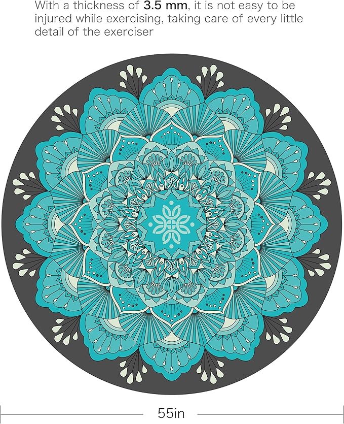- Extra Size: diameter 55" (140cm), our extra large round mat provide ultra comfort and support, you can enjoy your meditation or yoga freely and no worry about the limited of the traditional mat size. 3.5mm thick, it's perfect support your ankles in the practice, relieves achy joints and sore ligaments during your exercise.