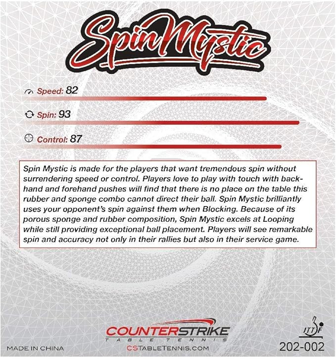 - RUBBER PERFORMANCE: Rubber Speed: 82 | Rubber Spin 93 | Rubber Control: 87