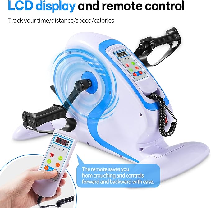 - 【Motorized Pedal Exercise Machine】Electric pedal exercise bike for leg and arm exercise, equipped with LCD display and handheld wired controller. 12-level adjustable speed, supports forward and backward pedal movement, helps relieve fatigue and blood circulation. Ideal for those recovering late after surgery or injury, and for the elderly for a low-impact leg and arm workout.