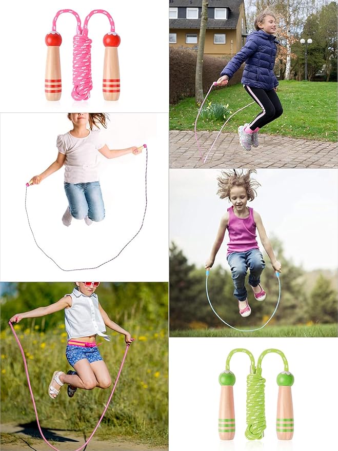 - ✔️【Children's Special Handle】Lorvain kid skipping rope is equipped with a small wooden handle designed for the size of children's hands. The wooden handle is not easy to break with high quality, smooth surface and clear texture.