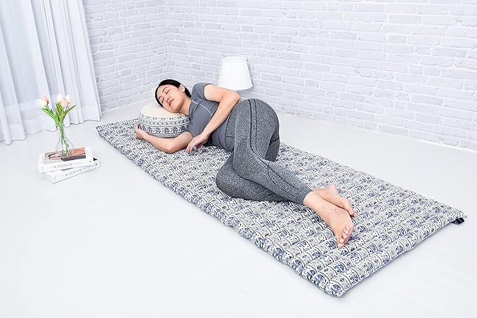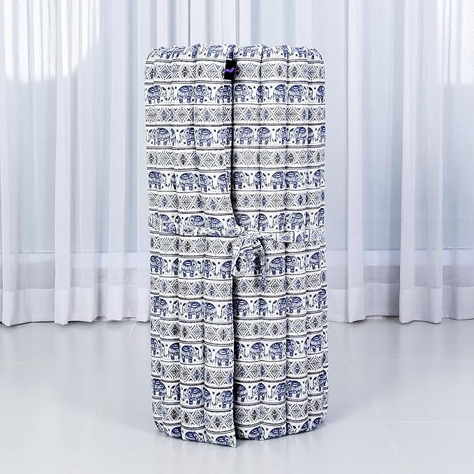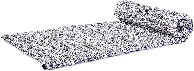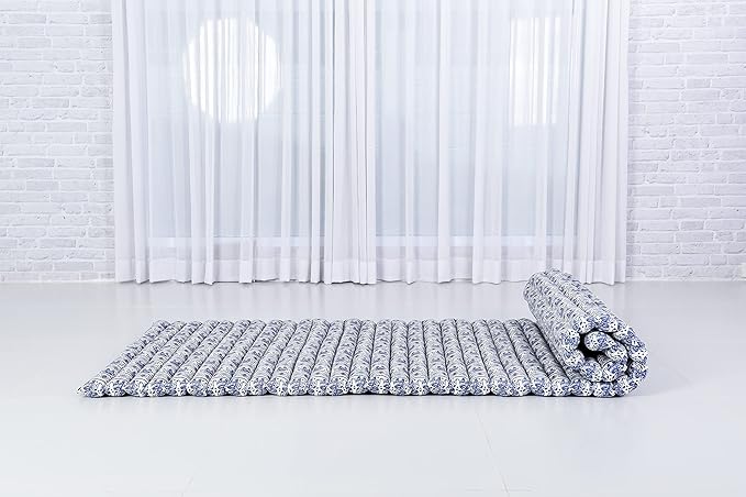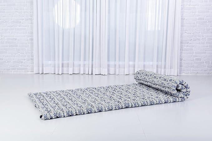 Leewadee - Foldable Floor Mattress - Japanese Roll Up Futon -Trifold Tatami Mat- Guest Floor Bed - Camping Mattress - Thai Massage Mat, Kapok Filled, 75 x 28 inches, Blue White