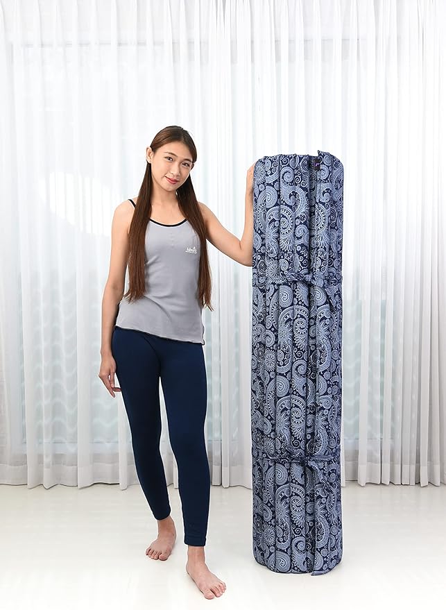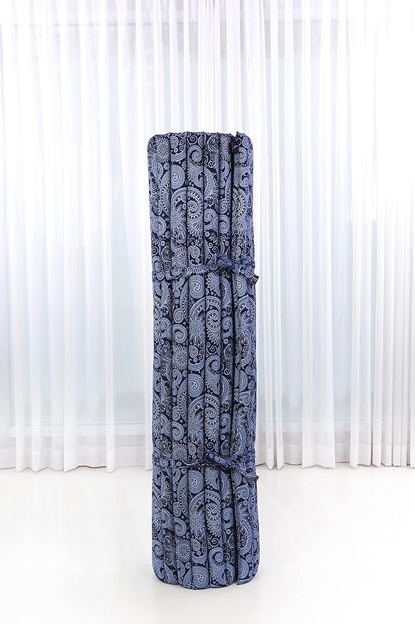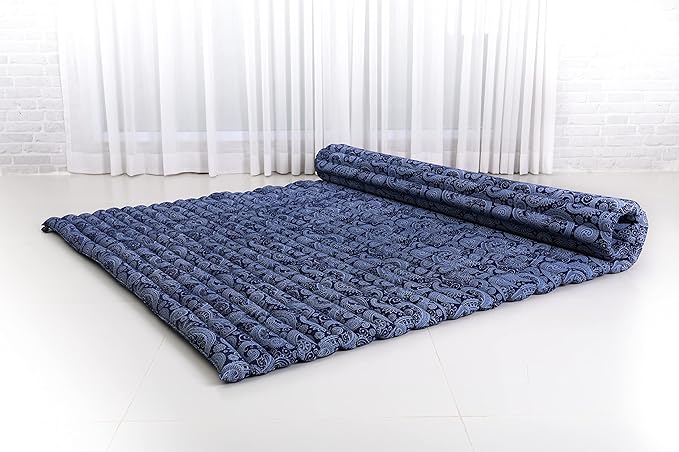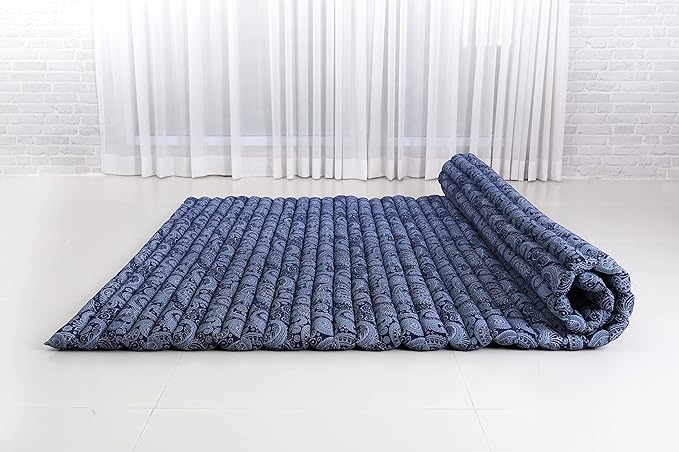 Leewadee - Foldable Floor Mattress - Japanese Roll Up Futon -Trifold Tatami Mat- Guest Floor Bed - Camping Mattress - Thai Massage Mat, Kapok Filled, 75 x 57 inches, Blue White