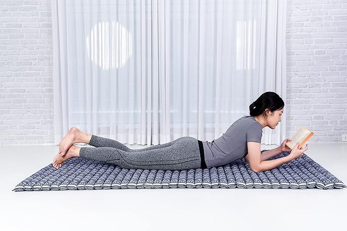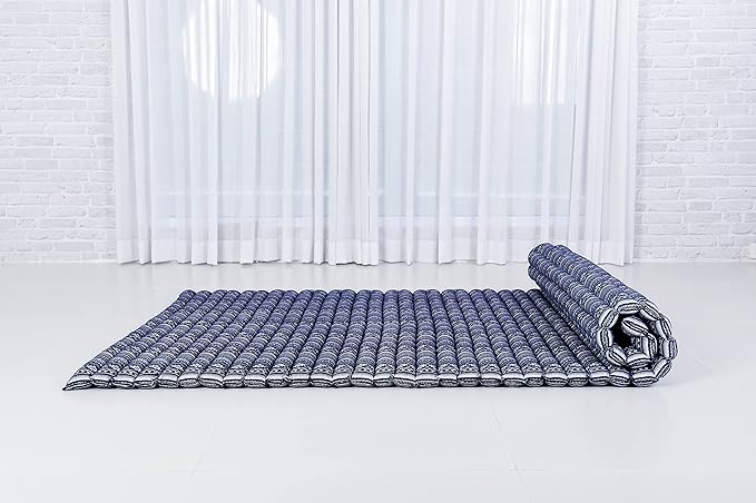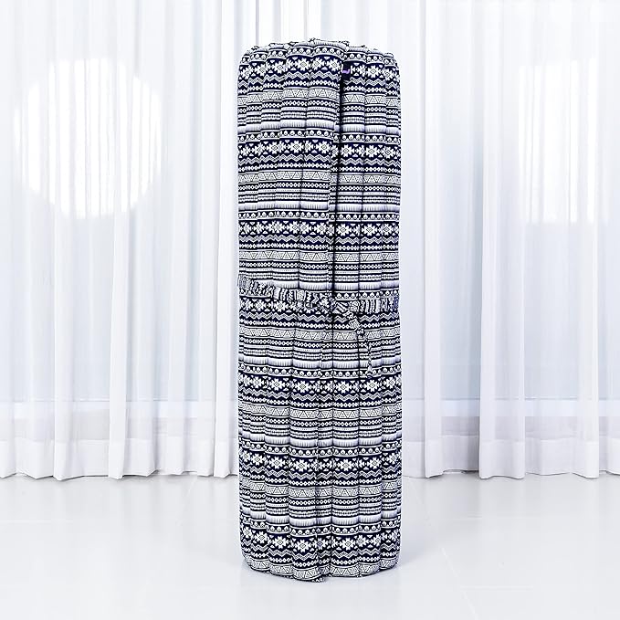 Leewadee - Kapok Roll Mat – Handcrafted Folding Sleep & Relaxation Mattress from Thailand, Ideal as Guest Bed, Camping Mat, Yoga Mat or Traditional Futon, 75 x 39 inches, Blue White