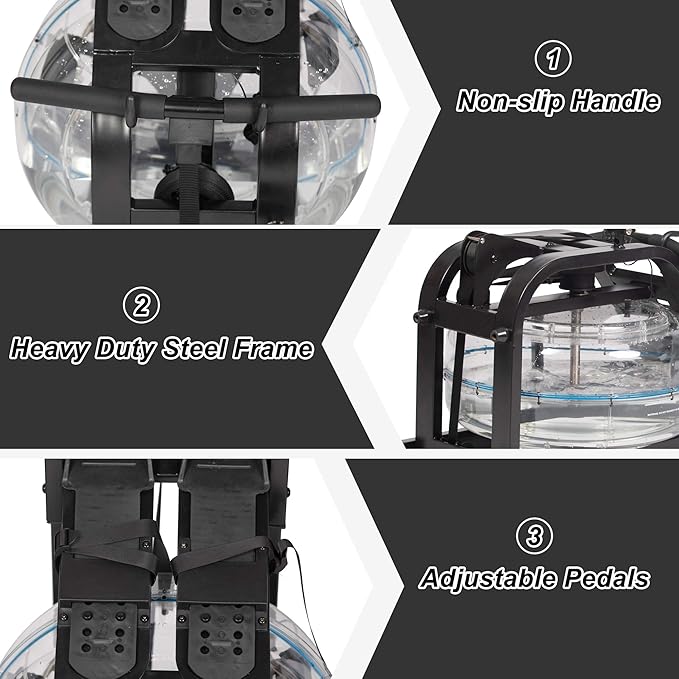 - Ergonomic Design | With transport wheel ,easy to move.The length of the footplates is adjustable and equipped with foot straps, which allows for better balance and a secure fit when rowing.Six non-slip wide point supports in the bottom make the frame more stable.
