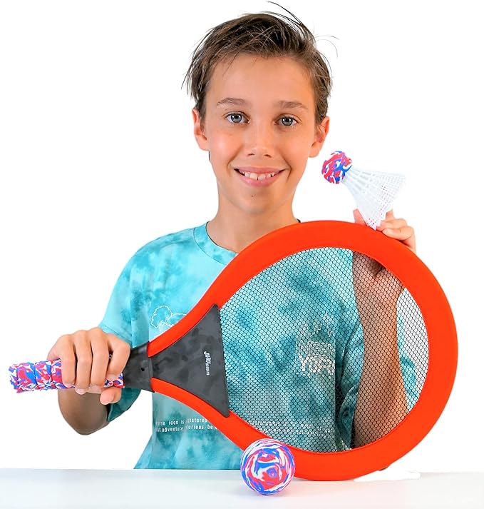 - LIGHT WEIGHT & COMFORTABLE GRIP - USA approved and ASTM tested toys. The paddle rackets are made with ultra soft foam. Comfortable grip handle so that you will not hurt your hands. Each racket is sand and water resistant, making them ideal beach and pool toys. Structured and made to be both durable and comfortable to the hand. Kid friendly badminton & tennis, ping pong, paddle ball toys.