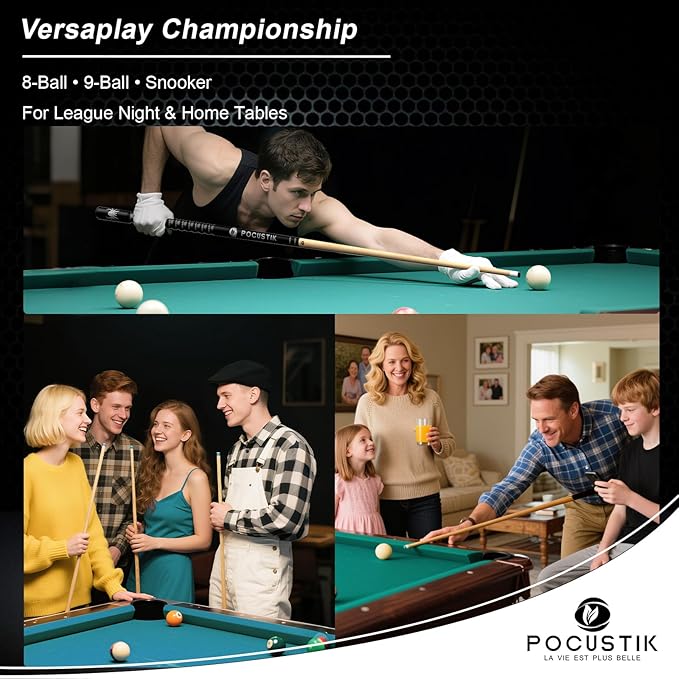 - Premium Billiards Accessory Package: Includes 4 professional-grade pool cues, 2 high-grip chalks, and a care guide. POCUSTIK’s 24/7 support guarantees satisfaction – your ultimate solution for house bars or competitive play.