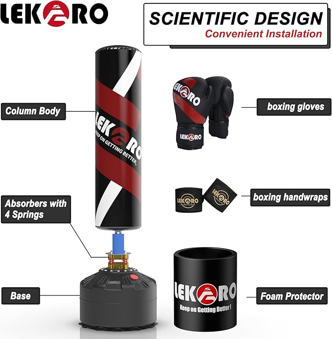 LEKÄRO Freestanding Punching Bag with Boxing Gloves, Heavy Boxing Bag with Stand for Adult Kids, Standing Kickboxing Bag