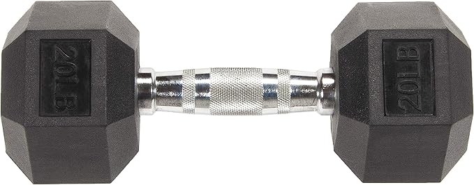 - Hexagon shape rubber encased heads help prevent rolling and provide easier storage