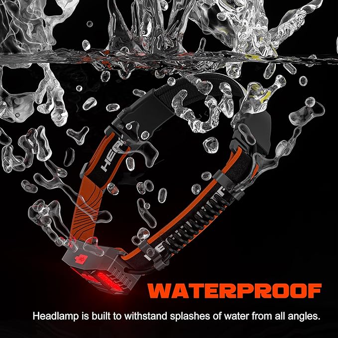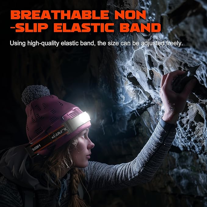 - [Breathable Non-Slip Elastic Band & Waterproof]: The hard hat headlamp's strap is made of a high-quality elastic band. The size can be freely adjusted. And elastic band is breathable, it’s non-slip and won’t easily slip off even it gets wet. With a nice waterproof rating, the waterproof headlamp is built to withstand splashes of water from all angles, so you can take it with you on any adventure, rain or shine.