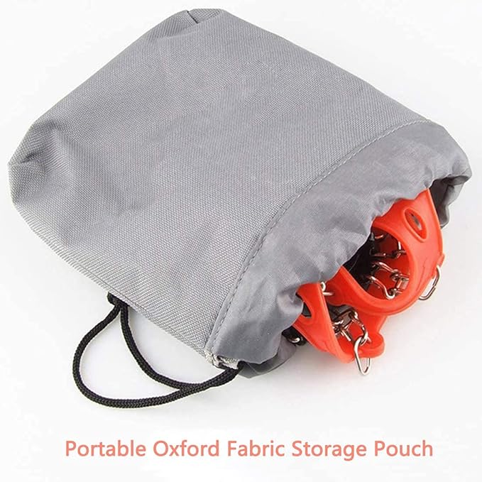 - PACKAGE INCLUDED: LINXGR 11-spikes ice cleats crampons contains a pair of crampons with portable oxford fabric storage pouch. Easy to store and carry. NOTE: Only suitable for amateur outdoor mountaineering, walking on ice, not professional rock climbing equipment.