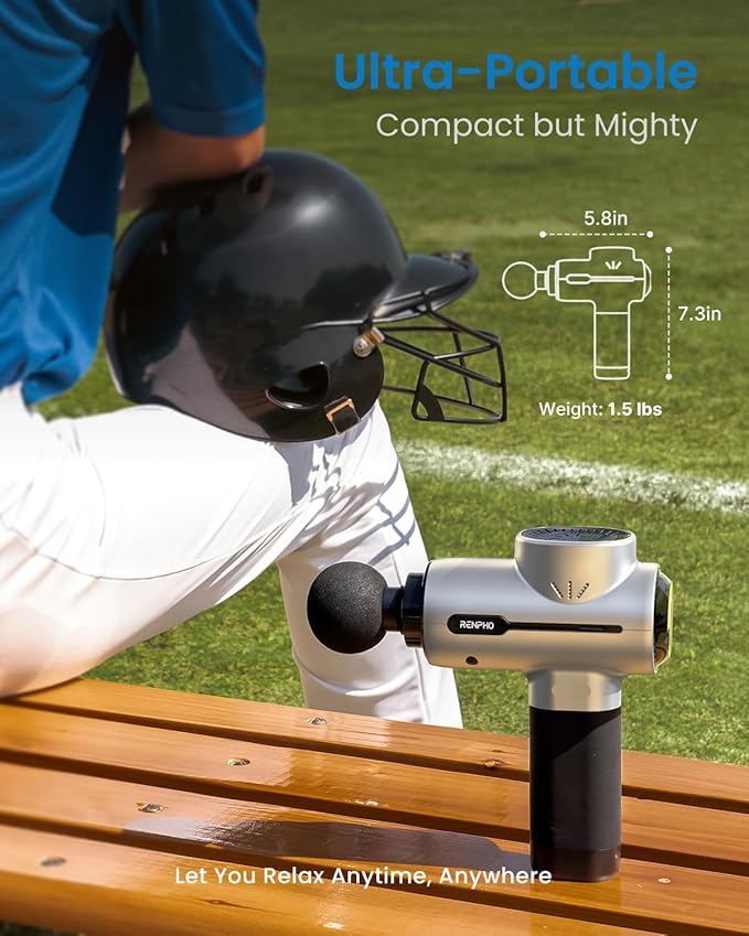 RENPHO Massage Gun Deep Tissue, Portable Percussion Massager for Back and Neck, Gifts for Men and Women, Handheld Device with Carry Case, Active